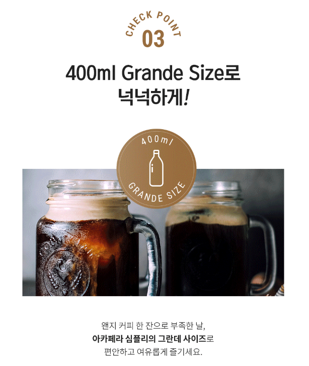 400ml 용량은 ‘두 번 나눠 마시기 좋은 크기’입니다.